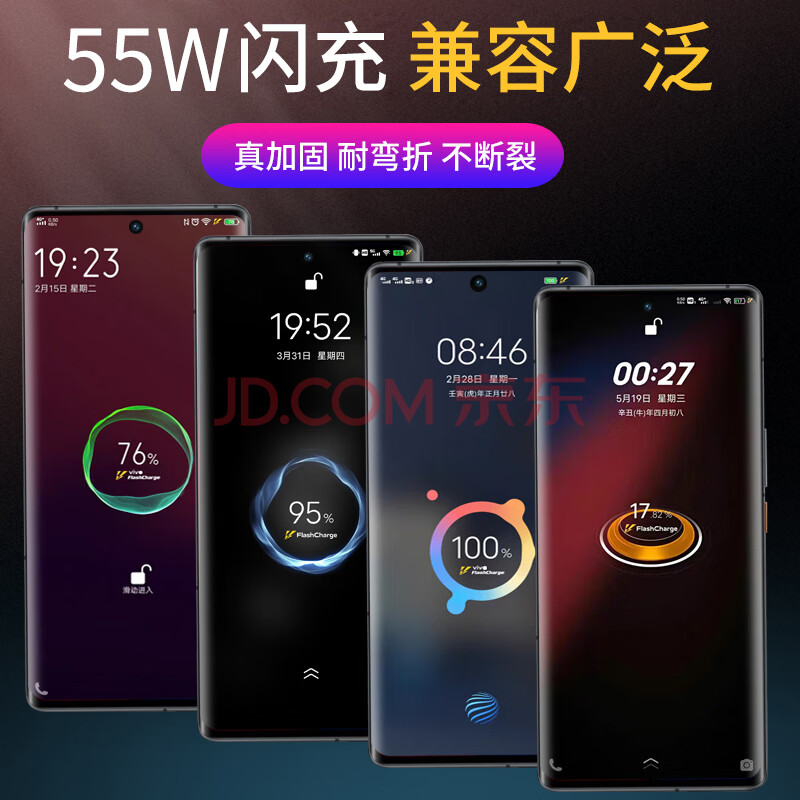 商品相册:轩邑 适用vivo数据线iQOO充电线55W/44W/33超级快充iqooZ10x/vivoT1/x70pro+x60/Y200t/100i闪充 1.5米第