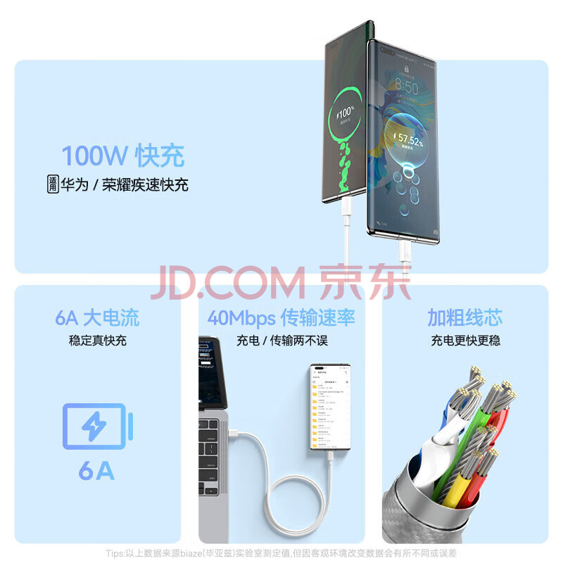 商品相册:毕亚兹适用于Type-C数据线6A超级快充88W/66W华为Mate70Pro+荣耀小米一加安卓手机笔记本电脑充电线3米第