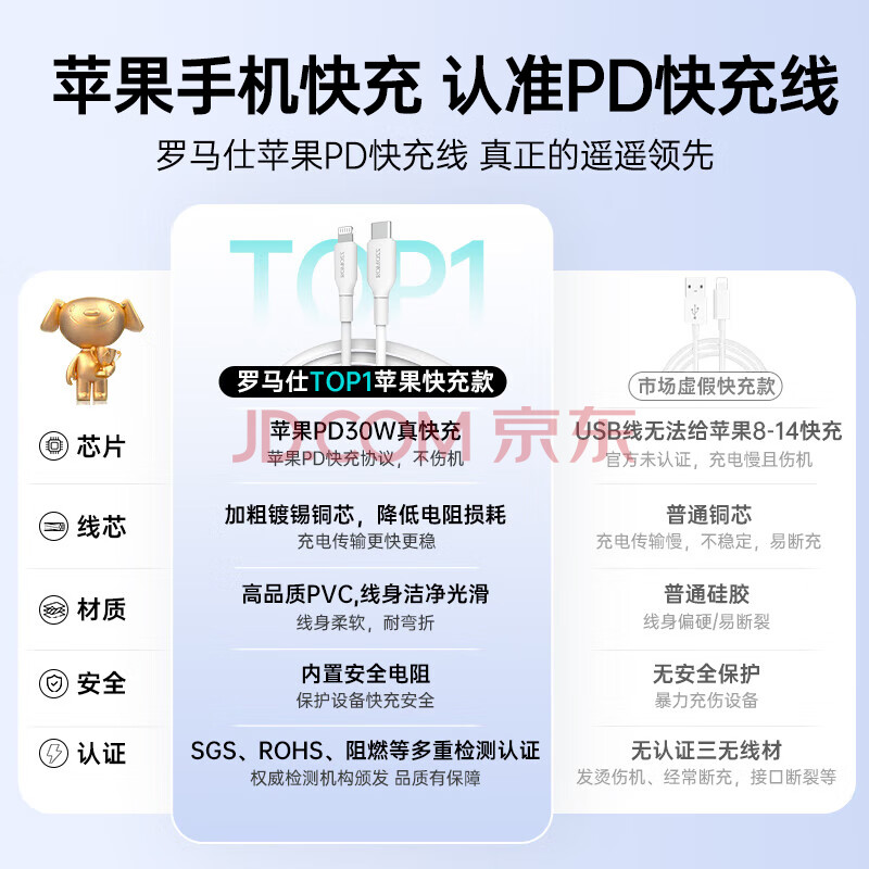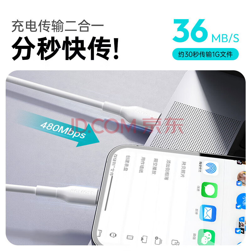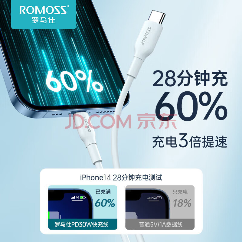 商品相册:罗马仕 苹果数据线Type-c充电线PD快充20W充电器线适用iPhone14/13ProMax/12/11/Xs/8P手机短线0.3米第