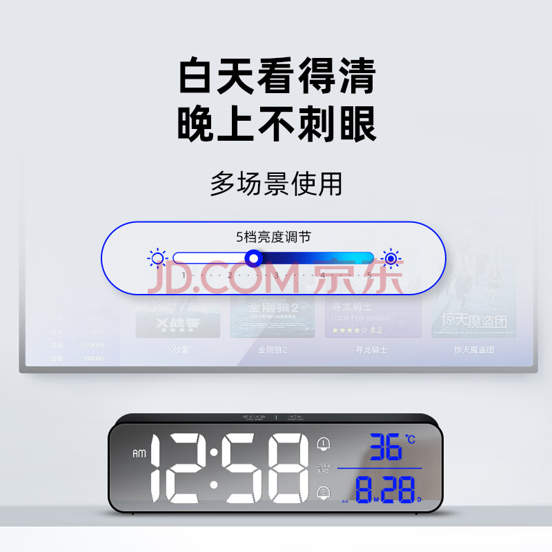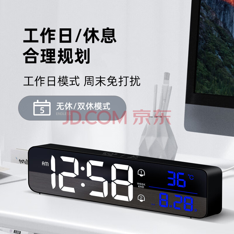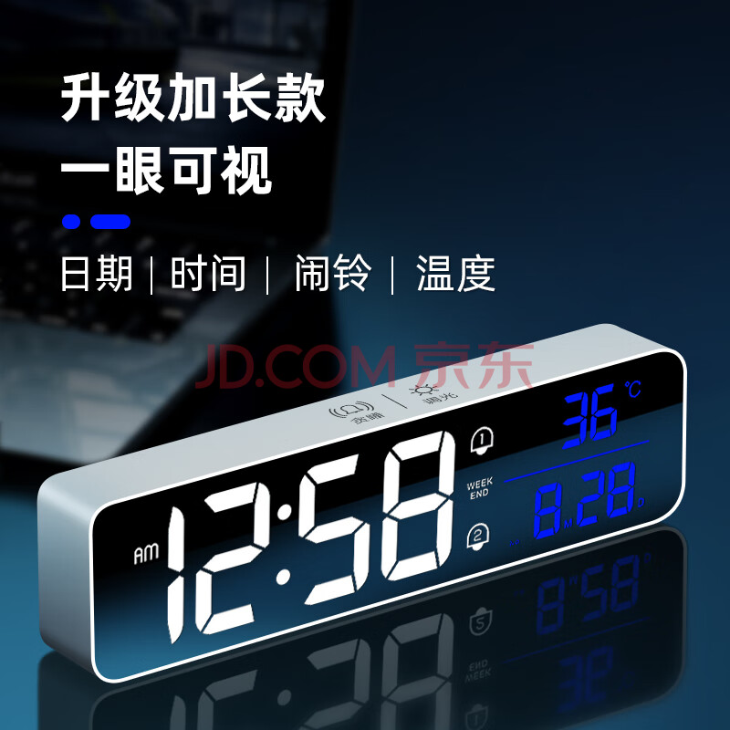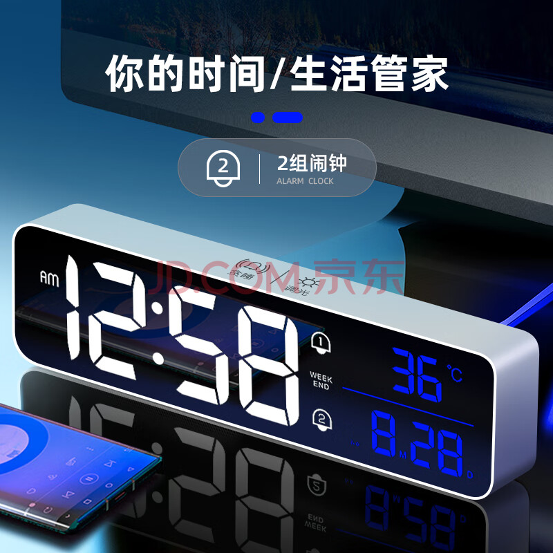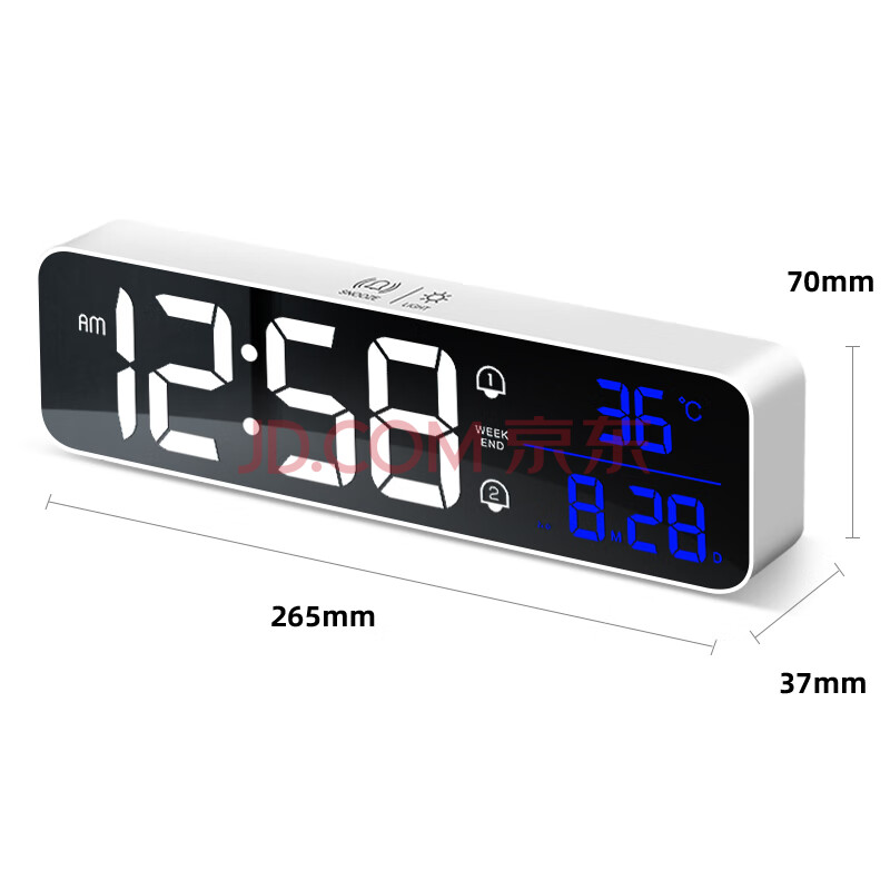 商品相册:码仕闹钟LED电子音乐超大声夜光多功能客厅可挂大尺寸台钟PLUS版白色开学季礼物第