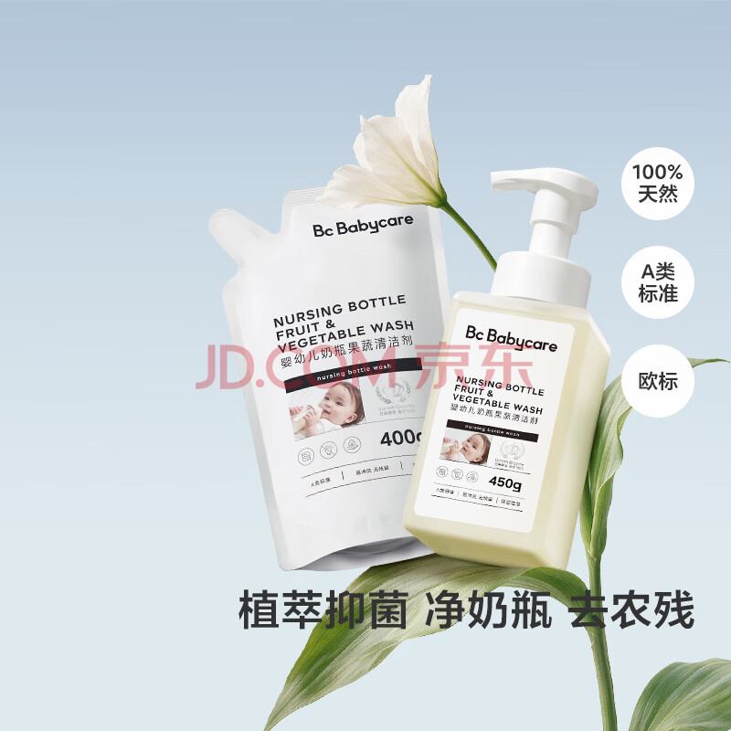 商品相册:babycare奶瓶奶嘴清洗剂 婴儿餐具果蔬清洁剂 谷物酵素清洗液 补充装400g第