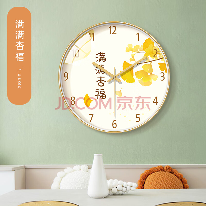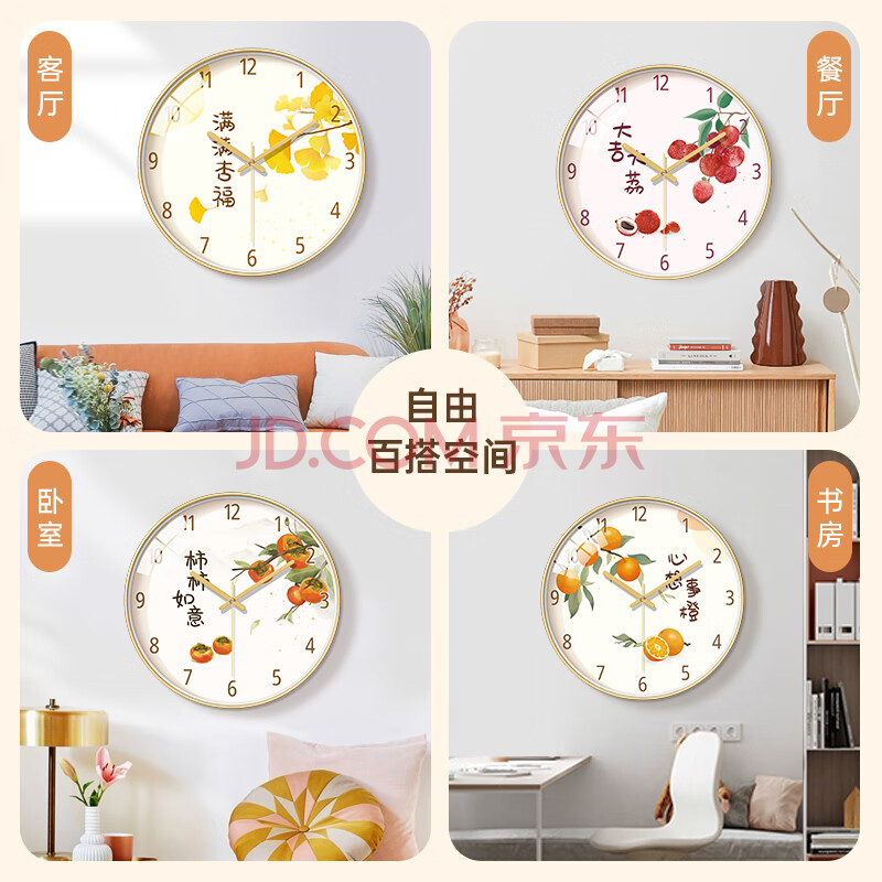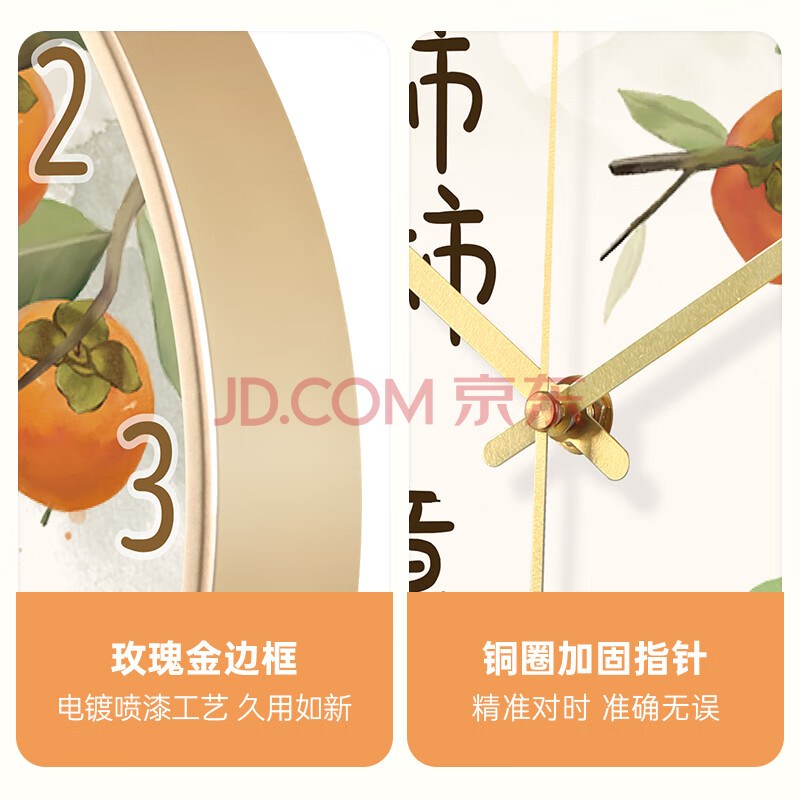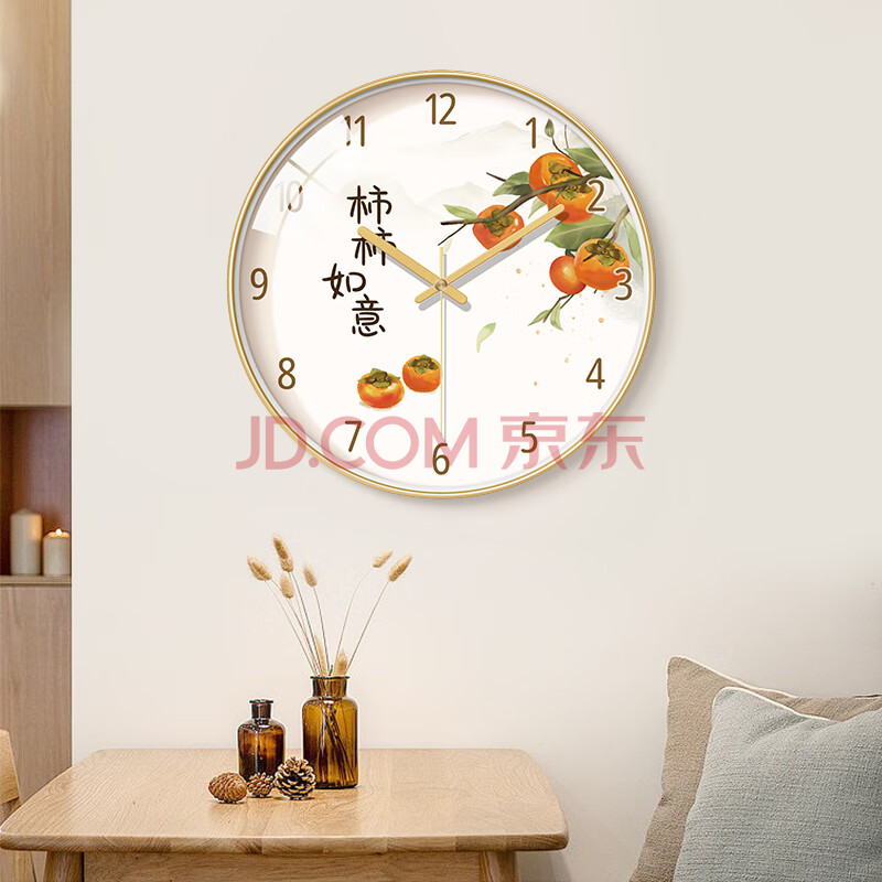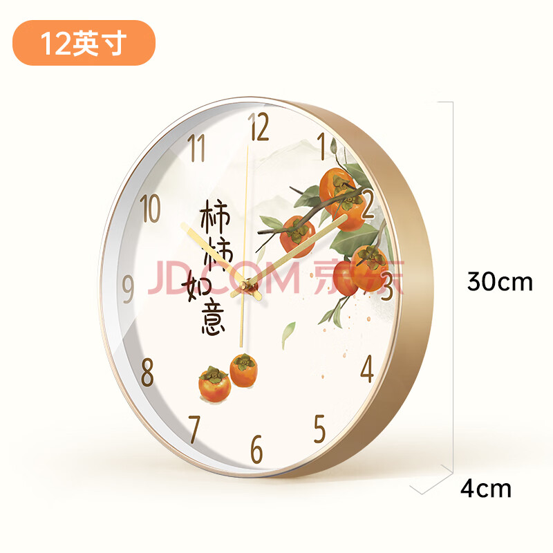 商品相册:BBA挂钟新中式柿柿如意客厅挂钟书房卧室餐厅家用创意钟表时钟30cm第