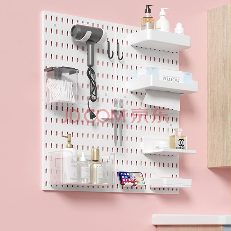 商品相册:班哲尼洞洞板免打孔玄关置物桌面书衣架墙面厨房挂钩收纳柜配件定制套装第1张/共4