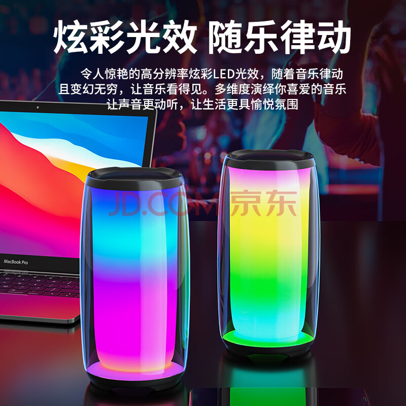 商品相册:纽曼BS02蓝牙音箱电脑音响便携式户外家用桌面迷你重低音炮全屏炫彩发光智能小音响微信收款音乐播放器第
