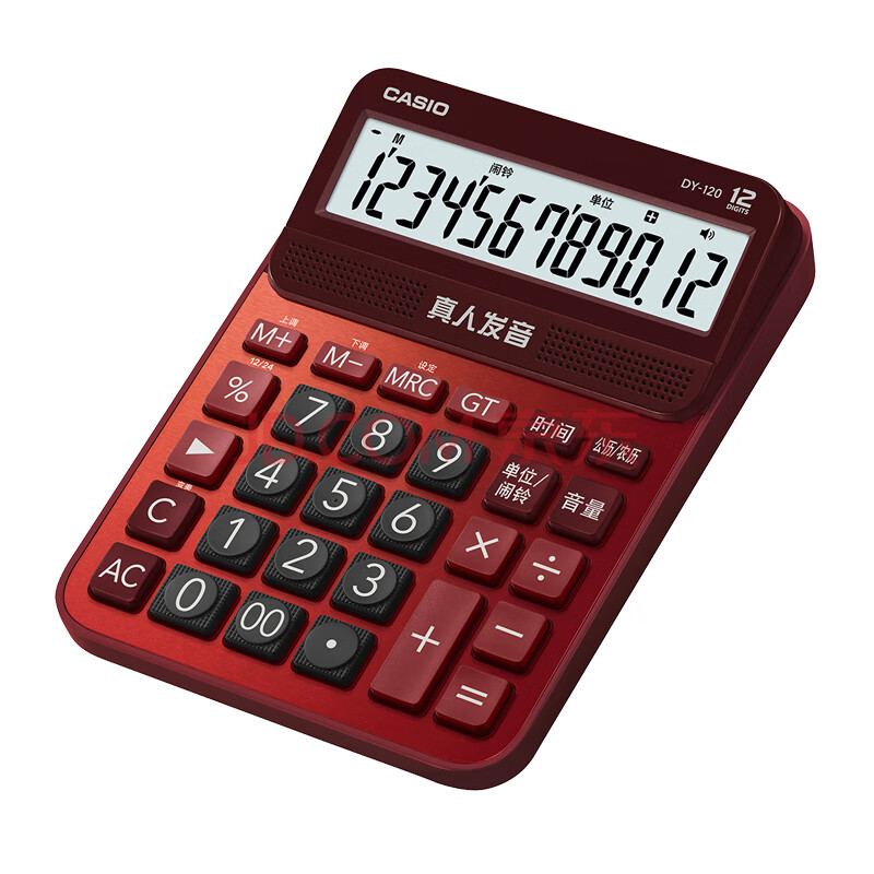 商品相册:卡西欧(CASIO)语音计算器朱墙红 真人发音金属机身趣味弹奏办公用品财务专用语音款 DY-120第