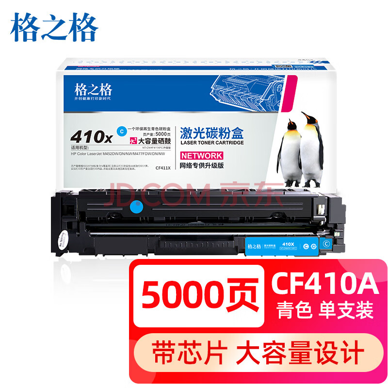 商品相册:格之格 CF410A大容量青色硒鼓适用惠普M477FNW M452DN 452DW 452NW M477FDW M477NW M377DW打印机墨盒第