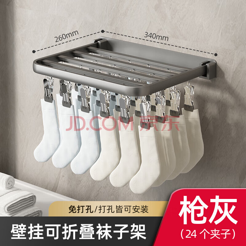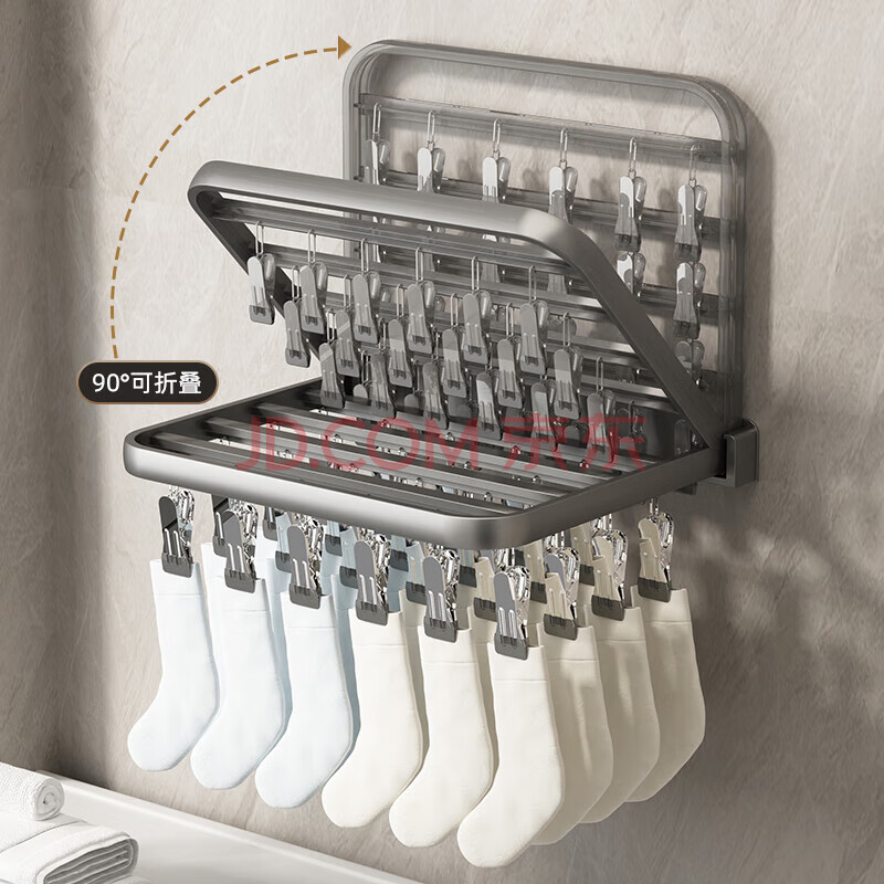 商品相册:慕亚 免打孔袜架可折叠壁挂晾衣架袜子架防风晒袜子夹多头晒晾衣夹第