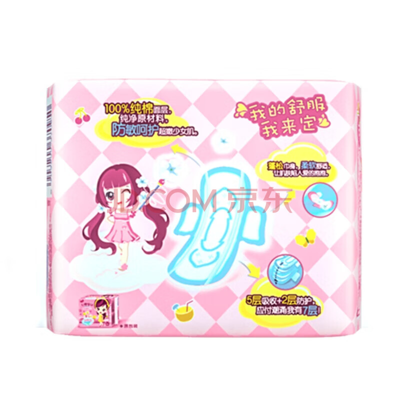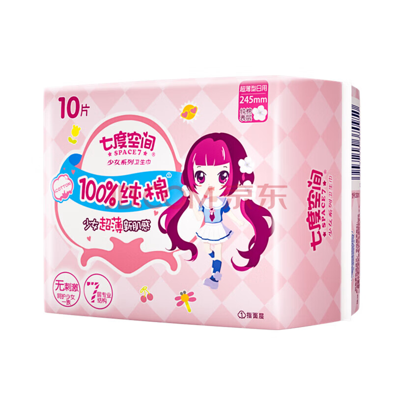 商品相册:七度空间少女系列纯棉超薄245mm日用10片/包*5包+女生护垫18片/包*3包装第