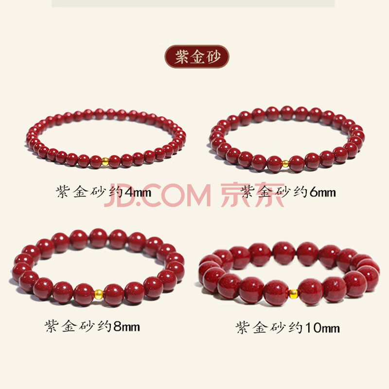 商品相册:泽心雅玉朱砂手串女士男士足金黄金紫金砂本命年手链送老婆第