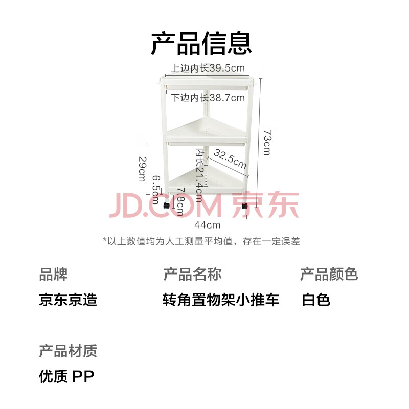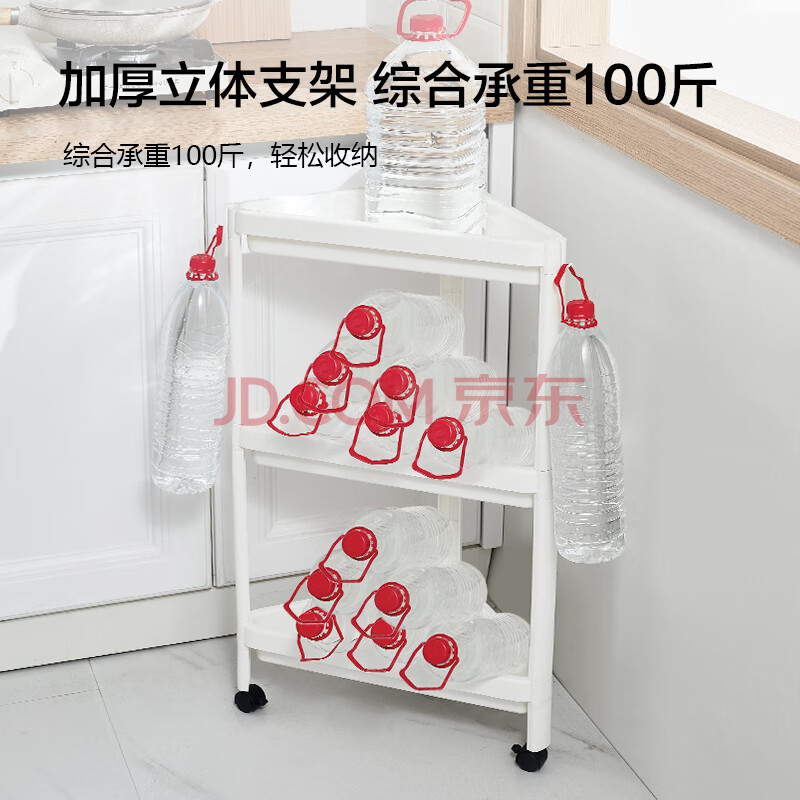商品相册:京东京造 Air系列 置物架卫生间转角浴室置物架厨房客厅收纳储物架3层带轮第