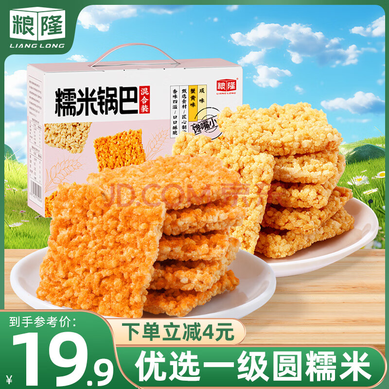 商品相册:粮隆糯米锅巴1000g礼盒装 混合味 薯片饼干 办公室休闲零食小吃第