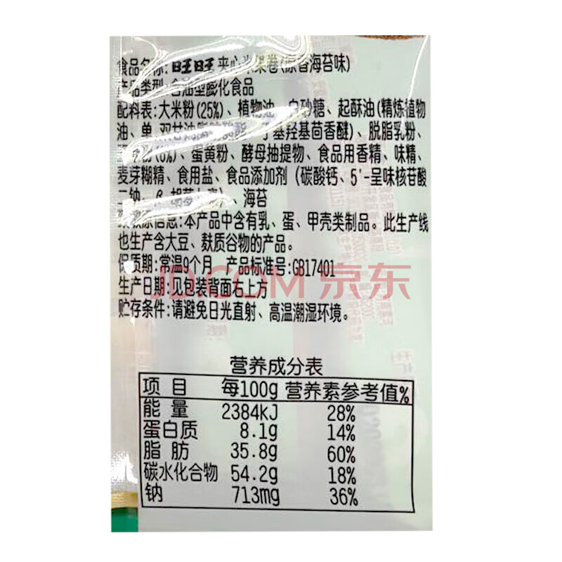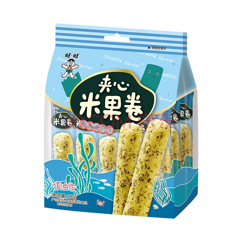 商品相册:旺旺 夹心米果卷 海苔味 180g 零食 膨化食品 饼干糕点第1张/共6