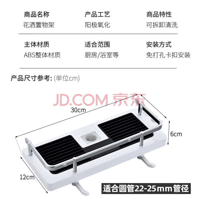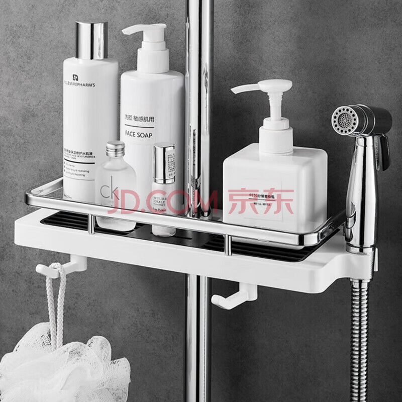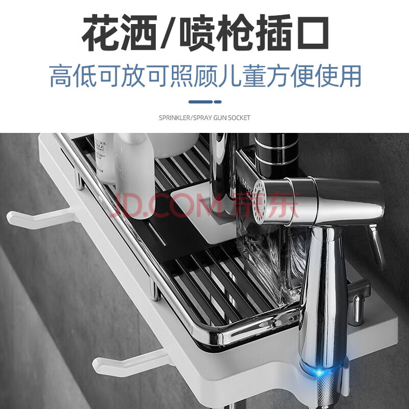 商品相册:茨格曼 浴室花洒置物架淋浴花洒杆置物架洗手间厕所置物架免打孔托盘第