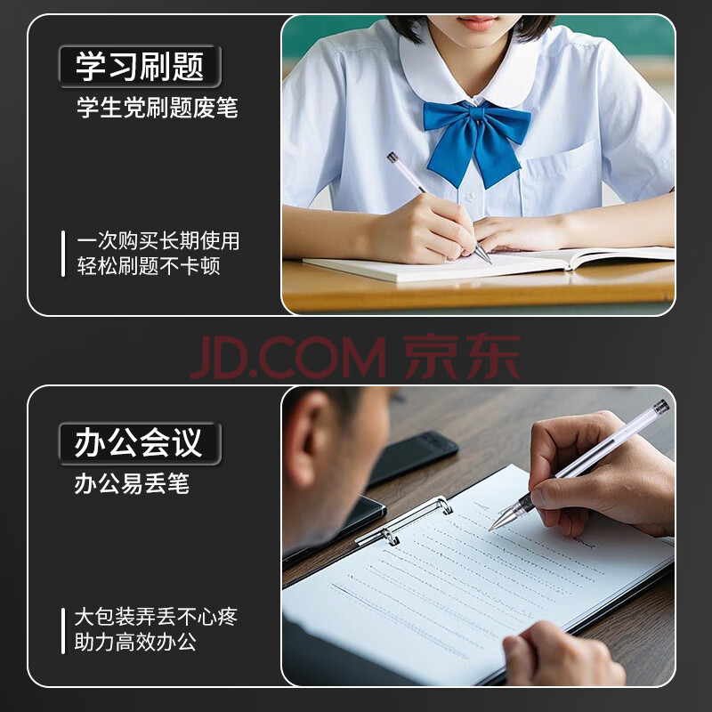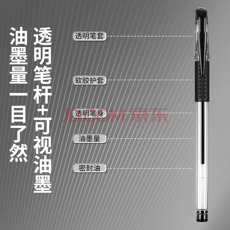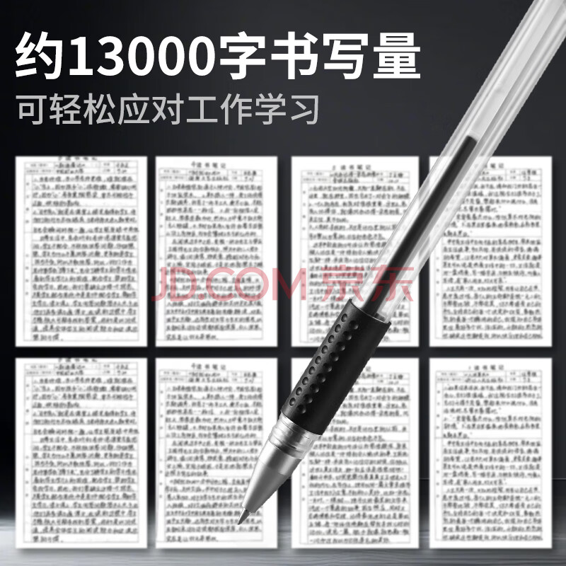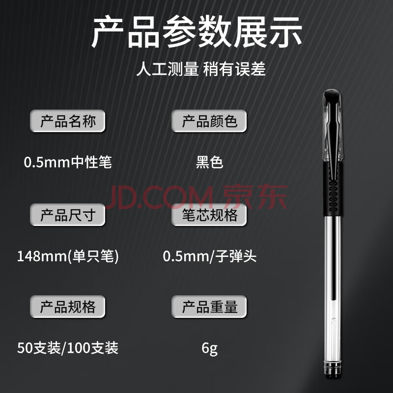 商品相册:嘉然恒 50支黑色中性笔0.5mm子弹头水性签字笔 办公商务会议用水笔 学生考试专用油圆珠碳素 大容量笔芯第