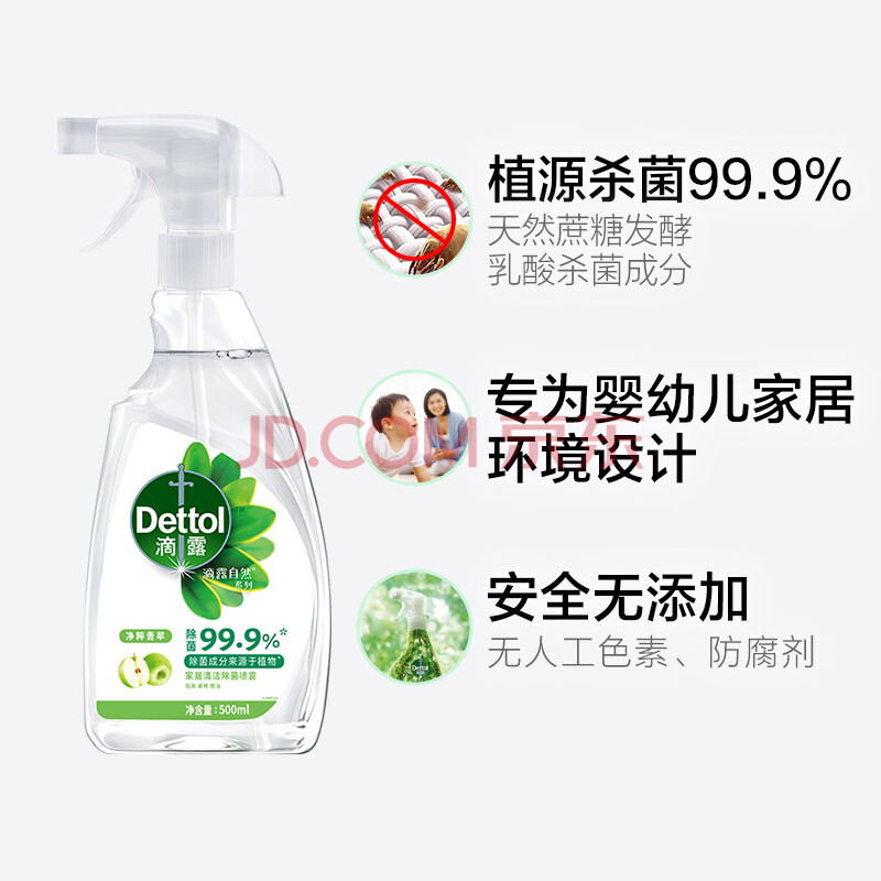商品相册:滴露Dettol家居清洁除菌喷雾净粹青苹500ml 天然植物发酵儿童玩具清洁第