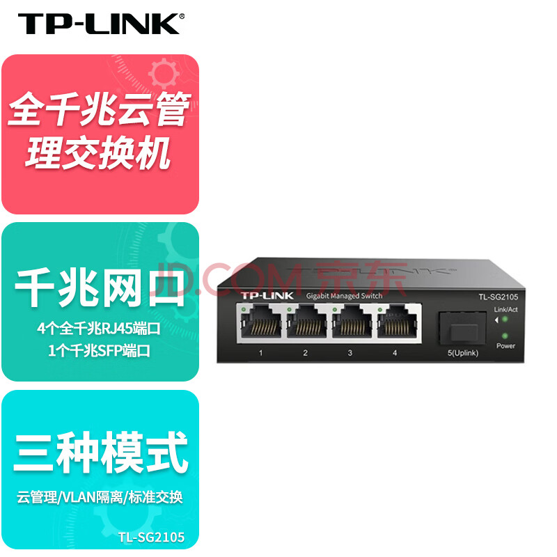 商品相册:普联(TP-LINK)千兆交换机4电口1光口可网管小型企业级网络交换器商用监控办公室网线分线器TL-SG2105第