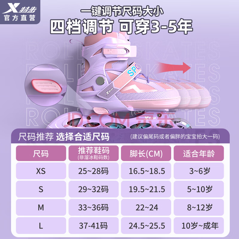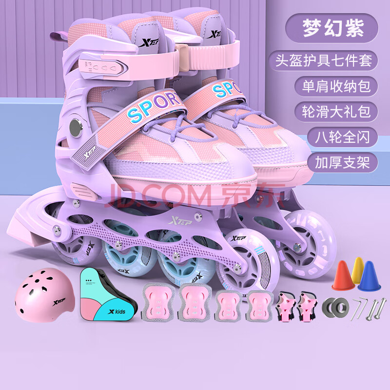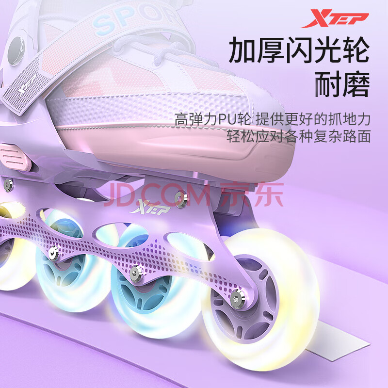 商品相册:特步(XTEP)轮滑鞋儿童全闪溜冰鞋男童女童滑冰鞋初学【中小学轮滑课程必备】第