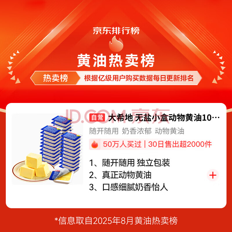 商品相册:大希地 无盐小盒动物黄油10g*30盒 国产 家用早餐烘焙原料 煎牛排搭档 第