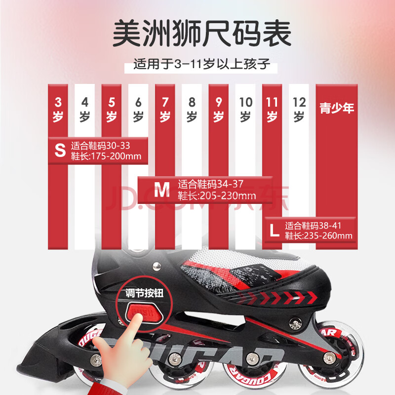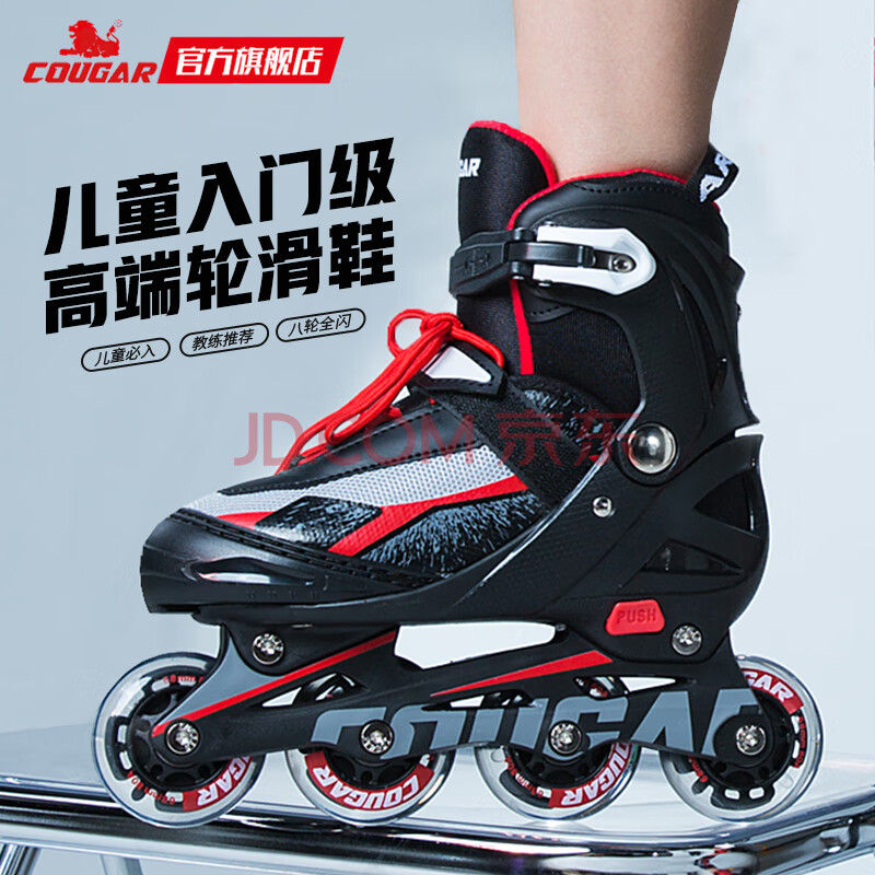 商品相册:美洲狮(COUGAR)儿童全闪溜冰鞋半软休闲轮滑鞋 紫白L码第1张/共5