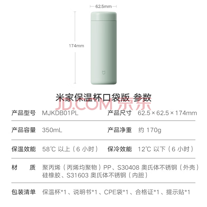 商品相册:米家 保温杯 316不锈钢水杯 男女士杯子 大容量茶杯便携 350ml绿色第