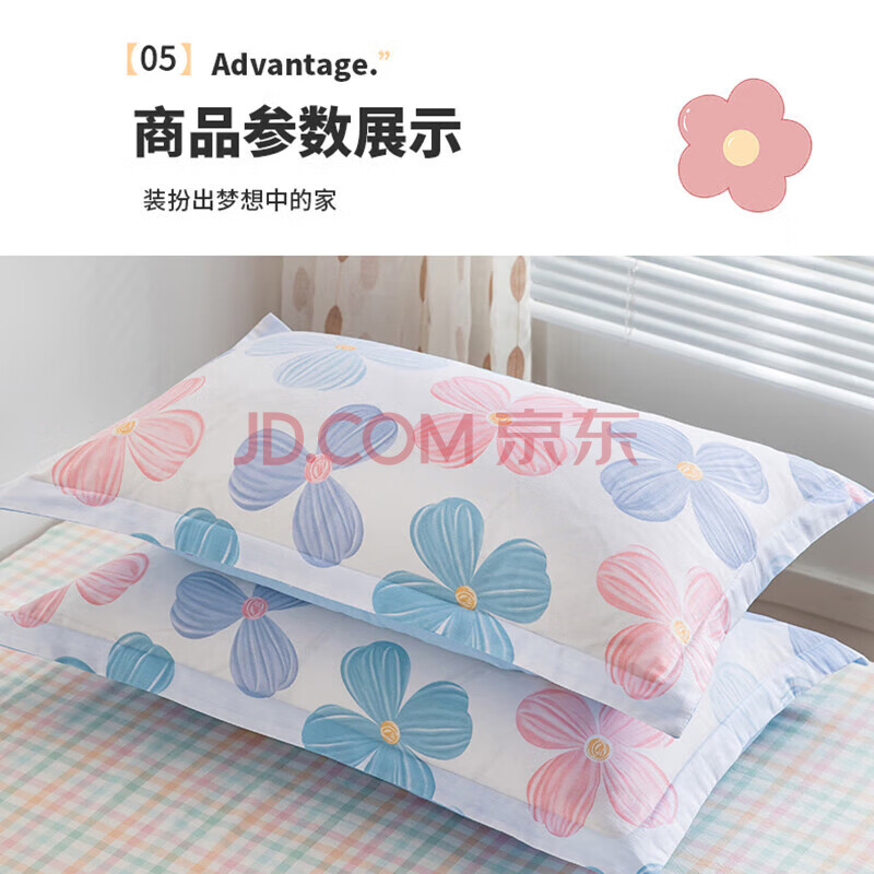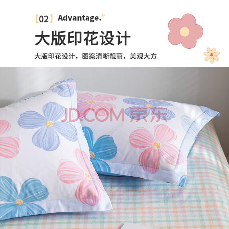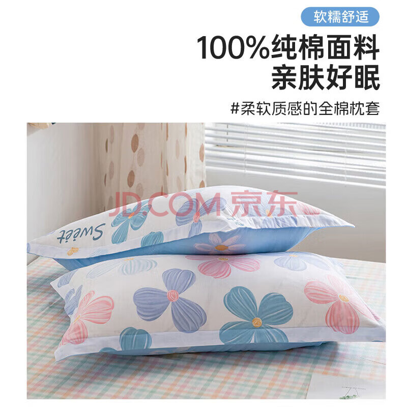 商品相册:洁丽雅纯棉7A抗菌枕套一对 加厚家用印花枕头套枕芯套 春日悠香48*74cm第1张/共3