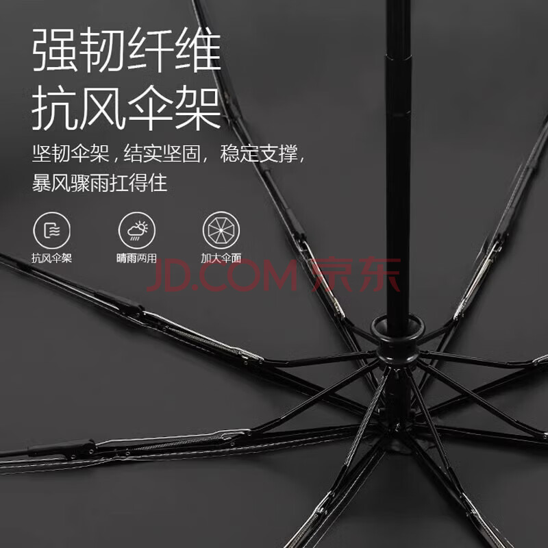 商品相册:米波迪(Meebordi)全自动晴雨伞三折遮阳伞男女黑胶伞便携车载折叠伞黑可定制第1张/共5