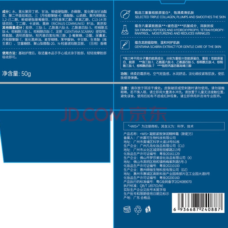 商品相册:WIS凝颜紧致弹润元气精粹面霜50g 抗皱紧致莹润富含胶原重塑肌肤弹性第