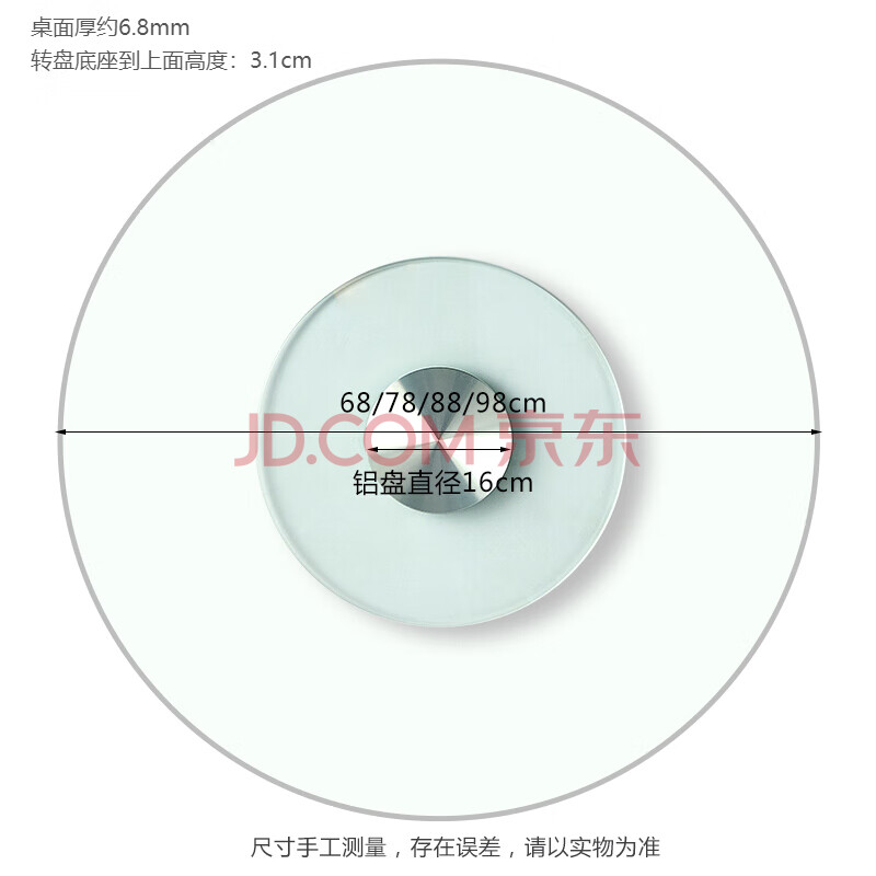 商品相册:L&S LIFE AND SEASON餐桌转盘钢化玻璃圆桌转盘家用饭桌玻璃转盘酒店转台ZP03直径98cm第