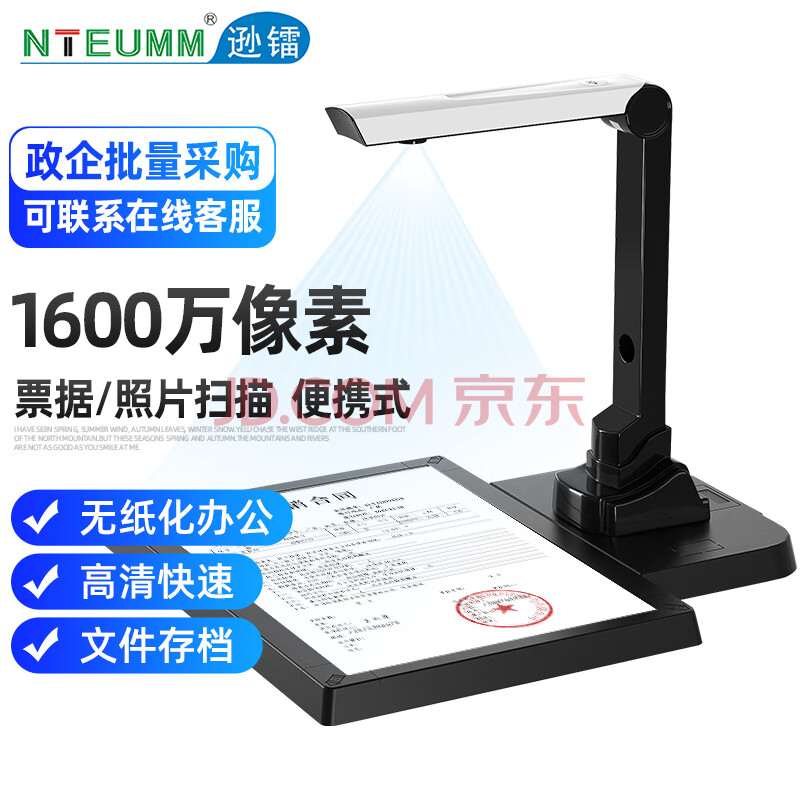 商品相册:逊镭(NTEUMM)1600万像素硬底座高拍仪 文件发票照片A4扫描仪自动连续扫描 高速办公用展台教学投影仪 CH-S2000第