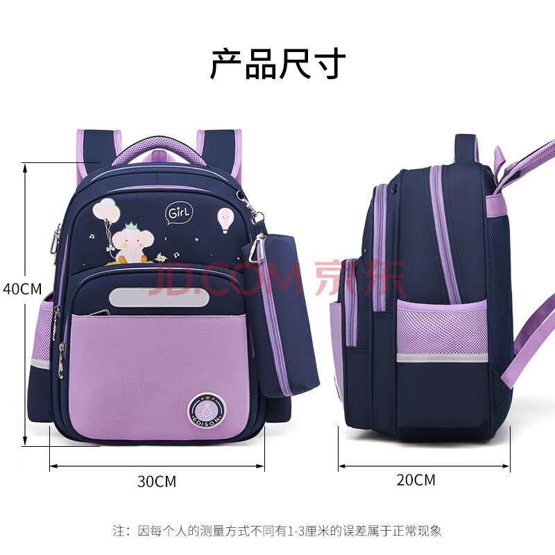 商品相册:Edison爱迪生小学生书包1-3年级轻便反光多隔层校园卡通儿童背包2391-2第
