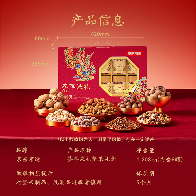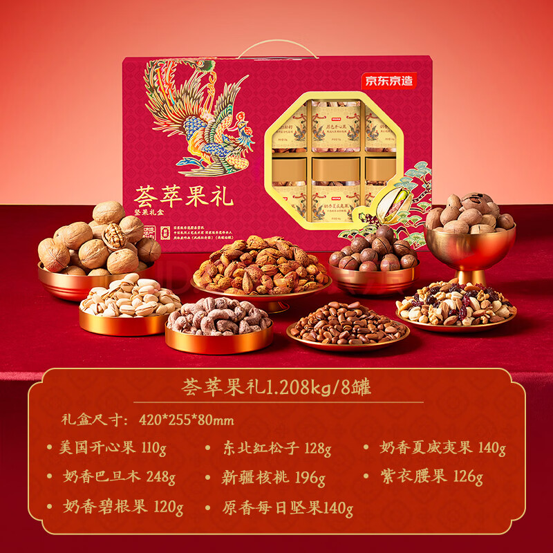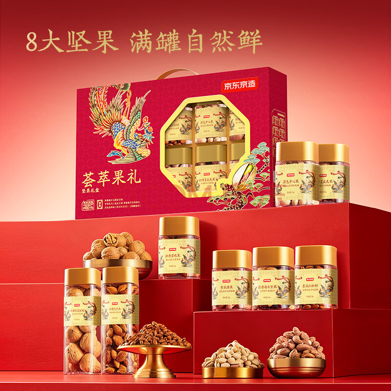 商品相册:京东京造纯坚果礼盒8罐1208g每日坚果炒货开心果松子零食送礼团购京东自营第