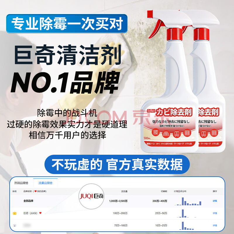 商品相册:巨奇(JUQI)严选 墙体除霉剂500ml墙面衣柜去霉点霉斑霉菌清除剂墙布木材除霉第
