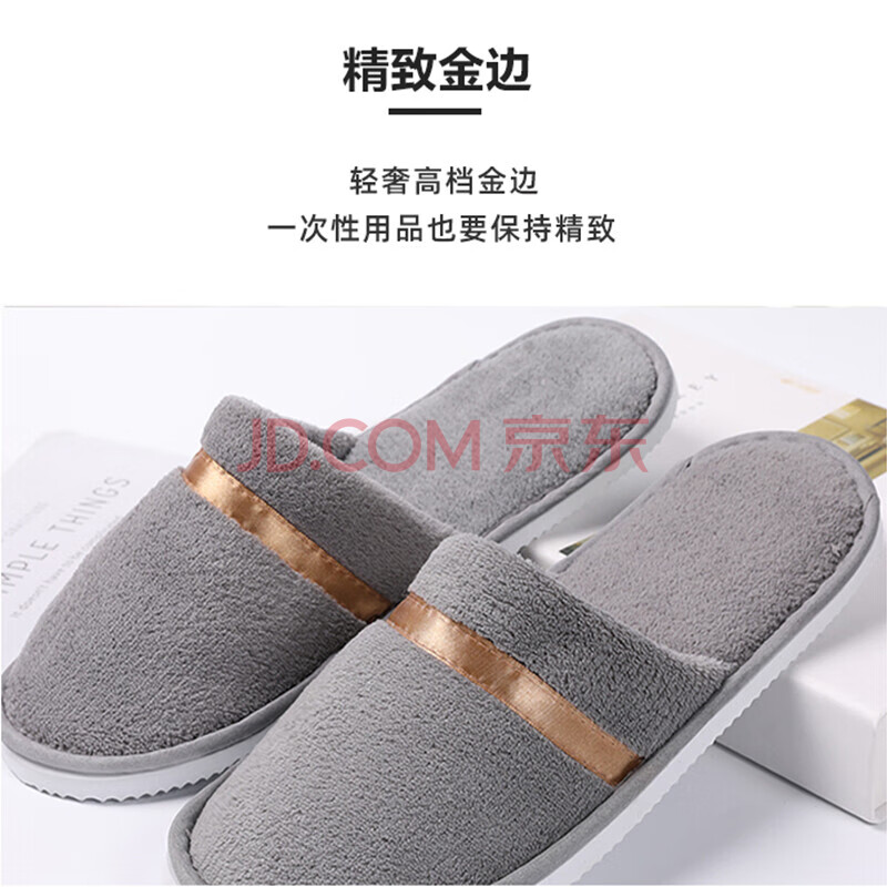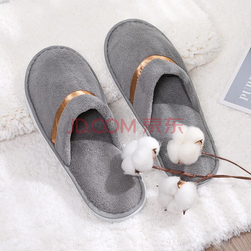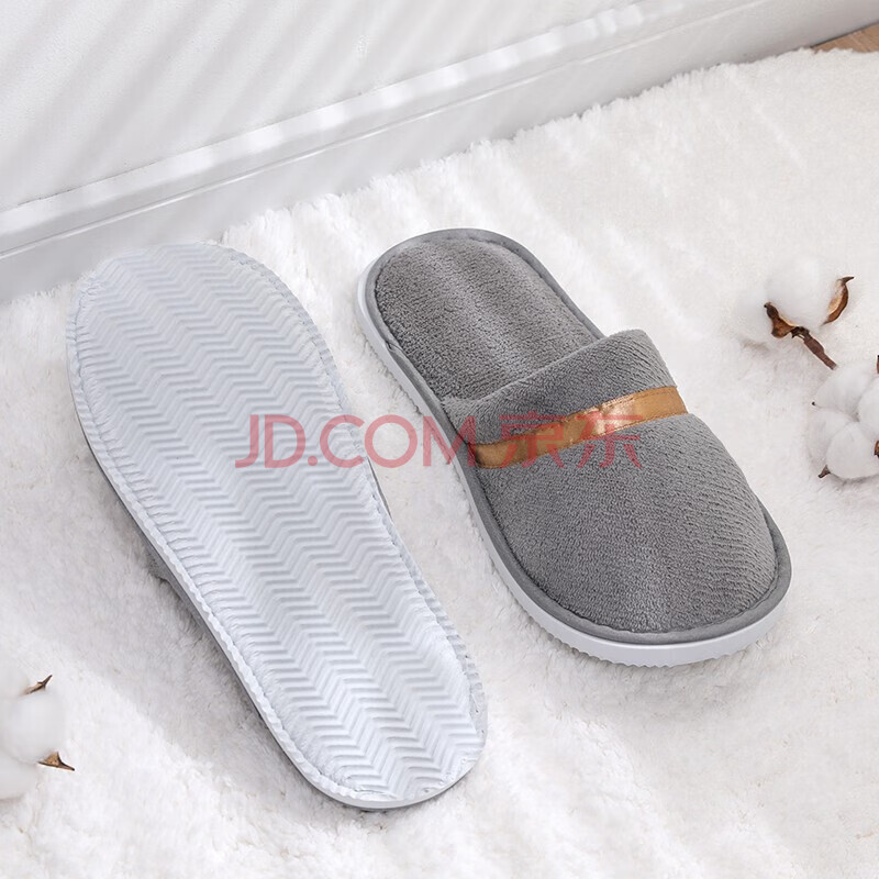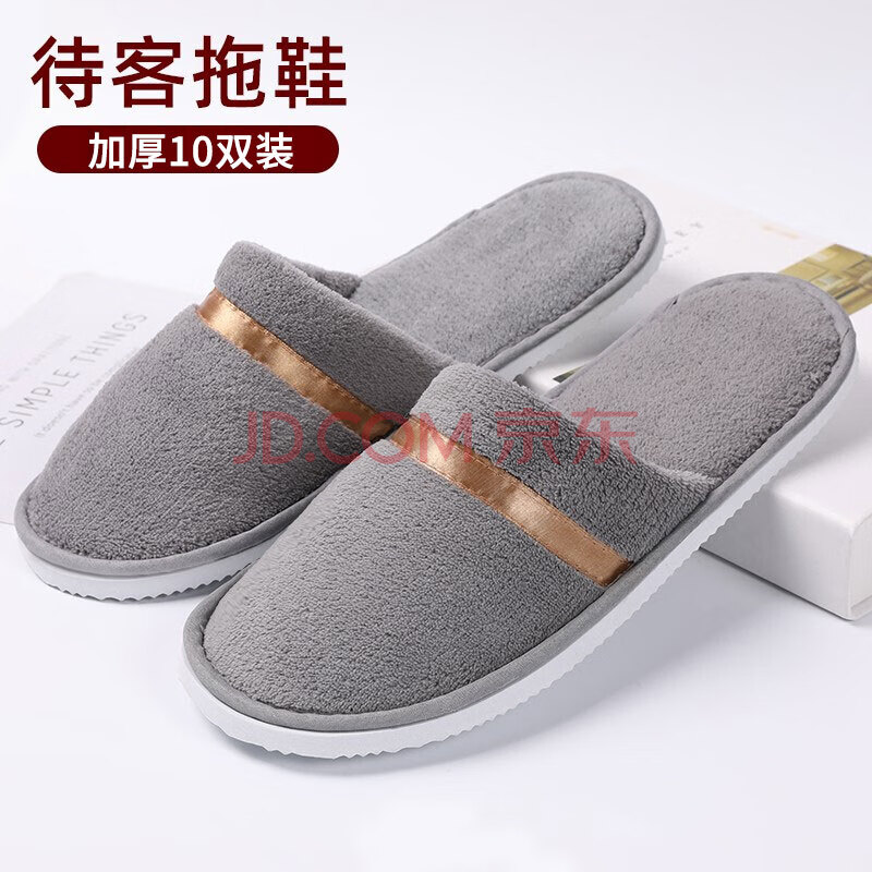 商品相册:易旅一次性拖鞋10双装 加厚旅行居家防滑珊瑚绒拖鞋 35-44均码 灰色第