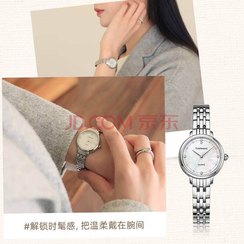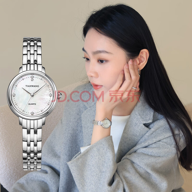 商品相册:天王(TIAN WANG)手表女 生日礼物钢带石英表银色盘手链礼盒LS31275S.S1.W第