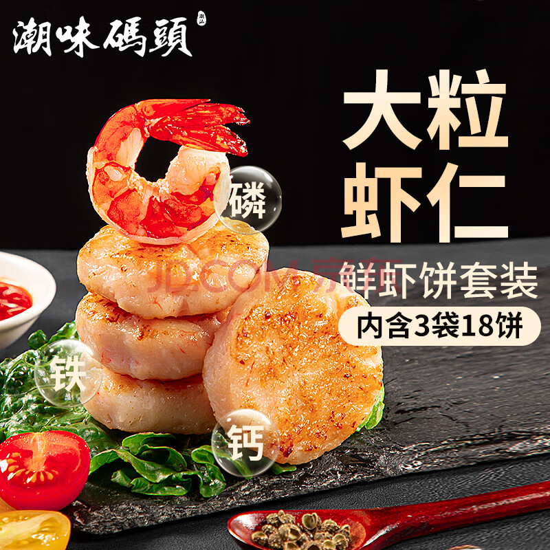 商品相册:潮味码头虾饼虾排720g(240g*3袋)18个大颗粒虾肉早餐食材第1张/共9