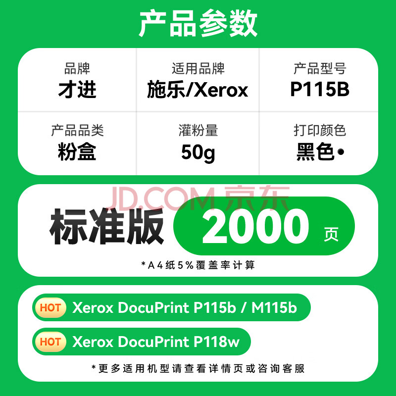 商品相册:才进 适用富士施乐P115b粉盒m115b m115w P115w硒鼓p118w m118w墨粉盒m115z/f/fs m118z激光打印机DocuPrint第