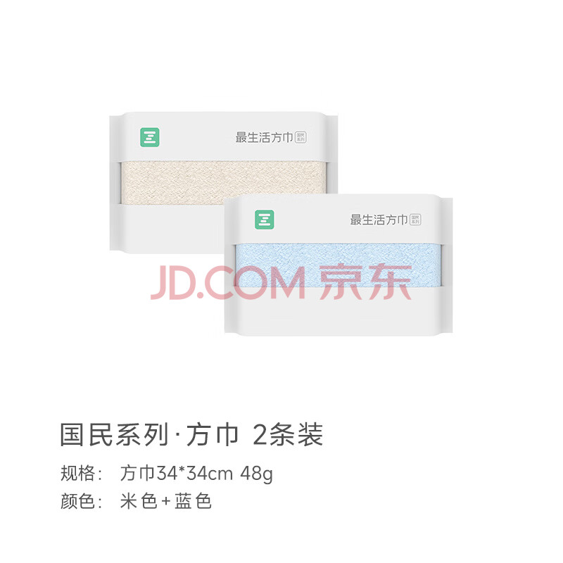 商品相册:最生活新疆长绒棉方巾2条装 全棉洗脸小毛巾柔软吸水擦手口水巾 米/蓝第