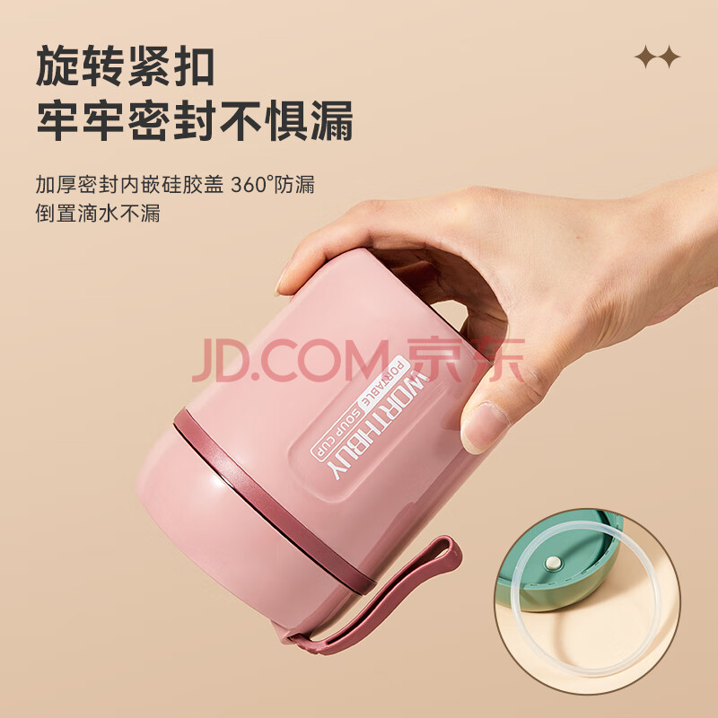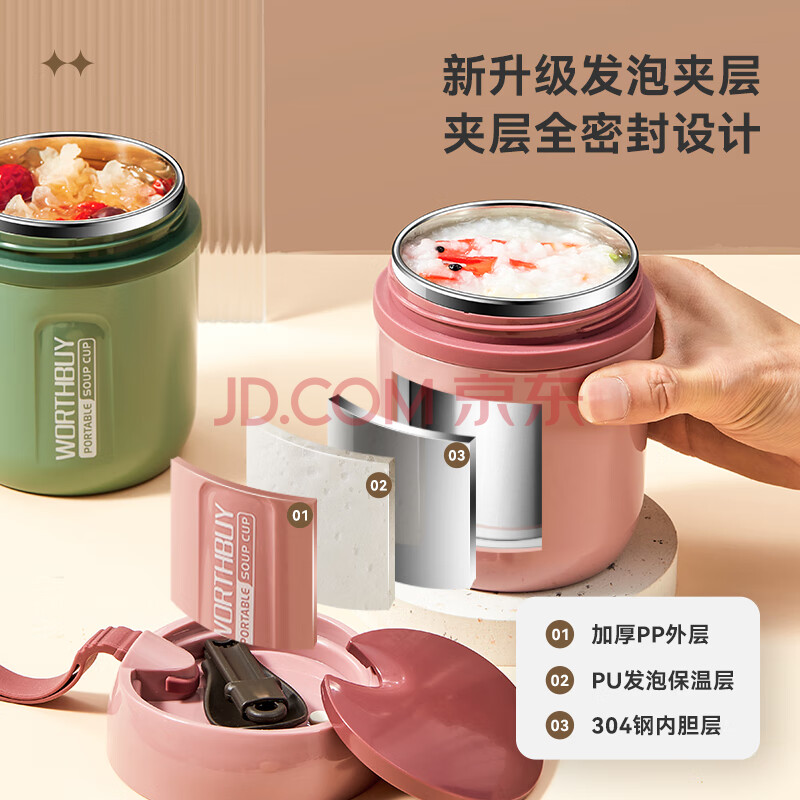 商品相册:沃德百惠(WORTHBUY)304不锈钢早餐牛奶杯燕麦杯带盖勺外带便携不锈钢汤杯保温饭盒第