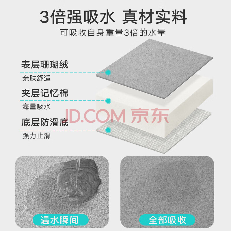 商品相册:大江浴室地垫门口吸水地垫厕所脚垫卫生间地垫50x80cm第