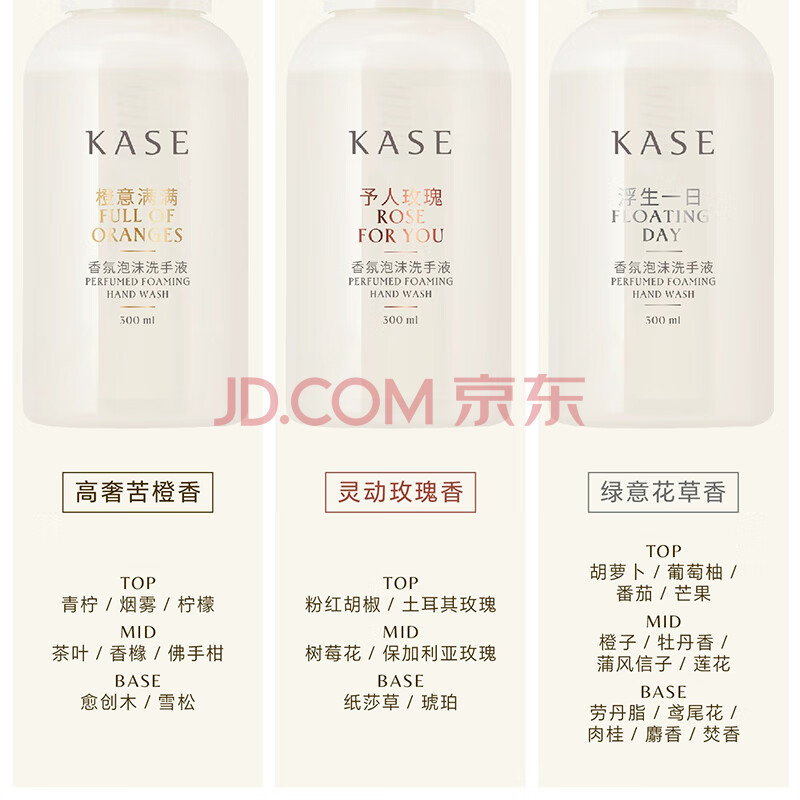 商品相册:KASE 香氛泡沫洗手液 氨基酸温和滋润保湿不伤手泡泡予人玫瑰300ml第