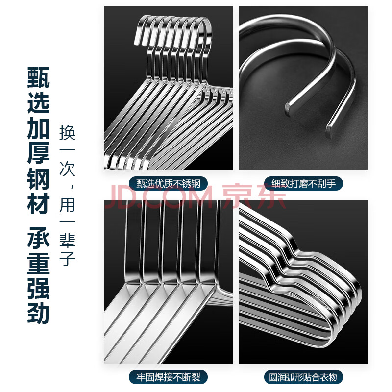商品相册:尚美德不锈钢衣架加宽加粗衣挂晾衣架防滑衣撑子晒衣架无痕挂架衣架40cm第