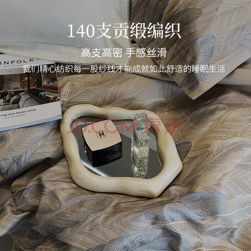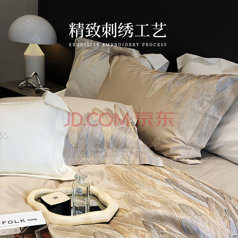 商品相册:La Torretta140支澳洲长绒棉四件套纯棉床品高奢刺绣床上被套床单咖220*240cm第