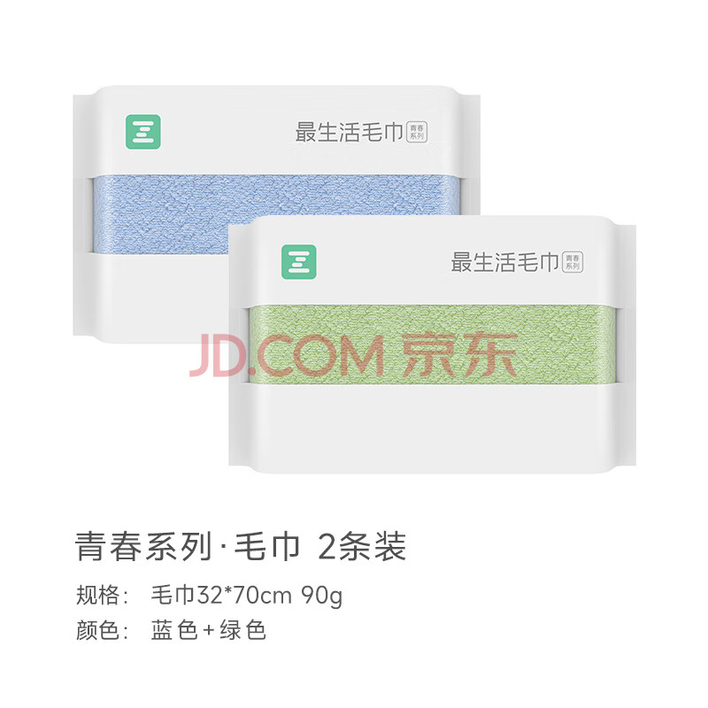 商品相册:最生活密封毛巾纯棉洗脸2条装 新疆长绒棉A类吸水家用毛巾洗澡大面巾第