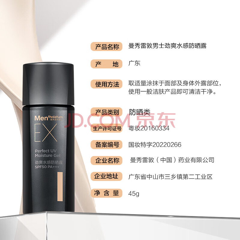 商品相册:曼秀雷敦男士专用水感防晒霜45g防晒SPF50 户外军训面部隔离霜保湿霜男第
