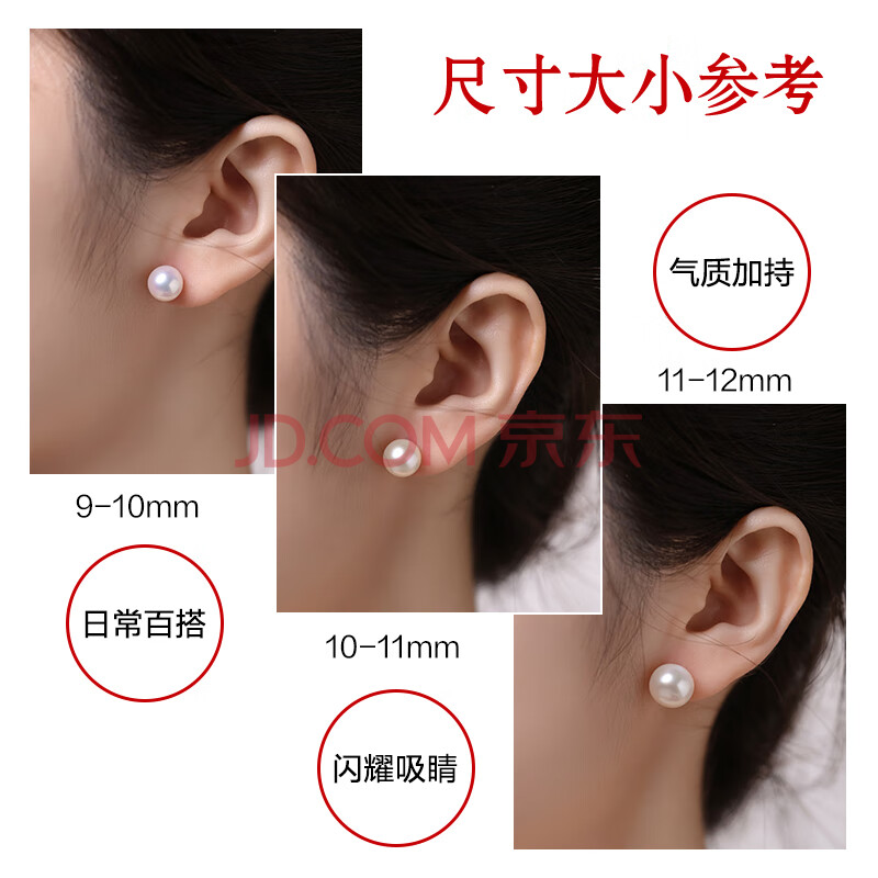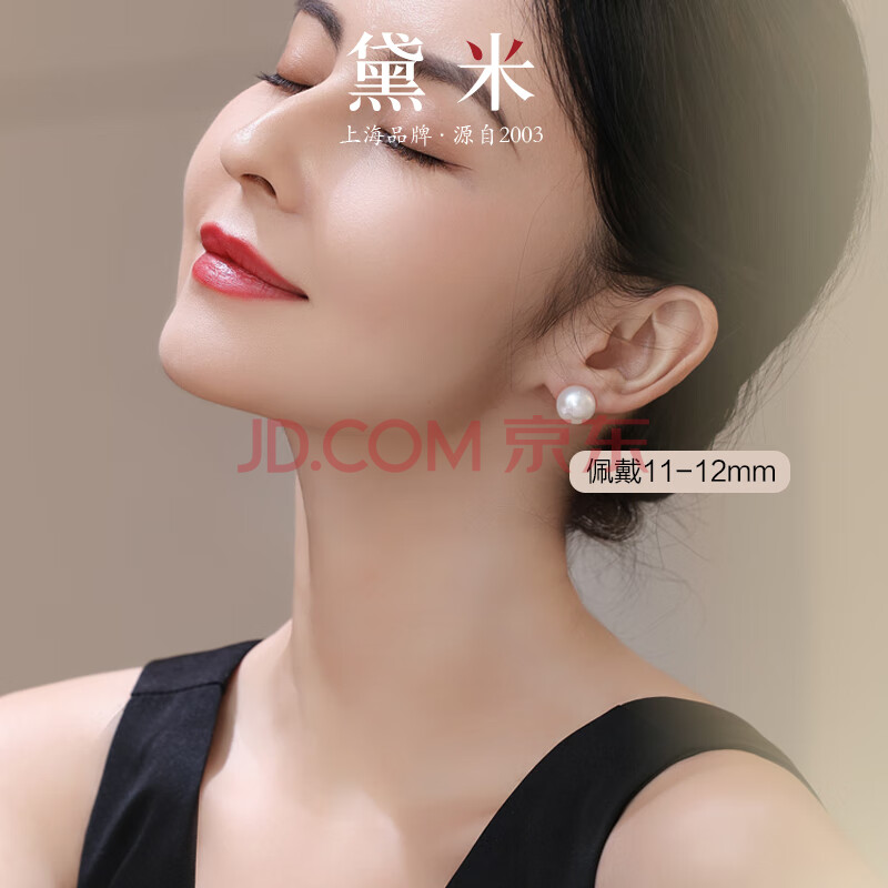 商品相册:黛米18K圆珠11-12mm金极简系列淡水珍珠耳钉母亲节礼物送女友老婆第