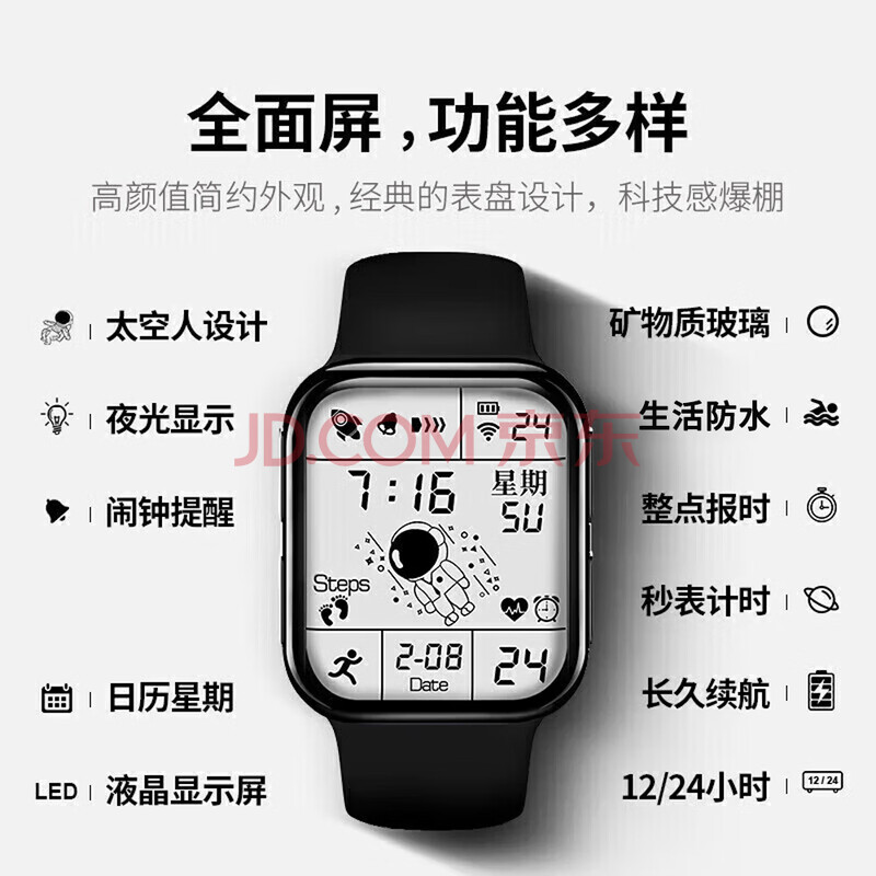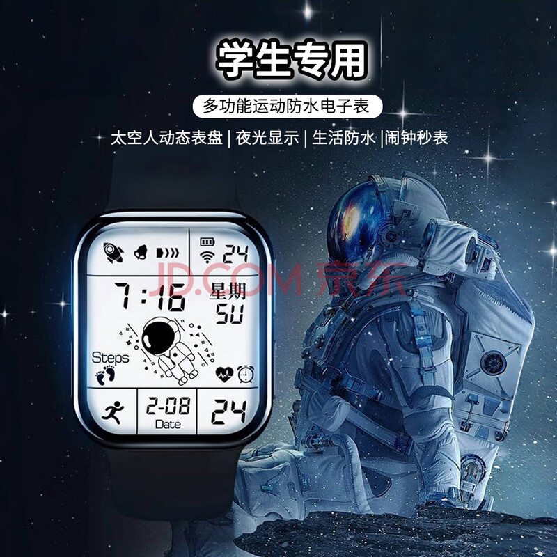 商品相册:MAX-G全面屏手表青少年初中学生男孩电子表防水夜光多功能运动儿童黑色第