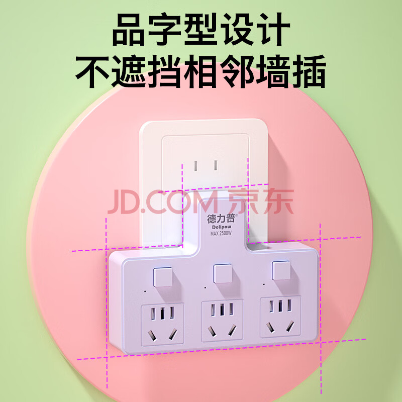 商品相册:德力普(Delipow)插座 品字形一转二多功能转换插头/分控开关/无线转换插座第