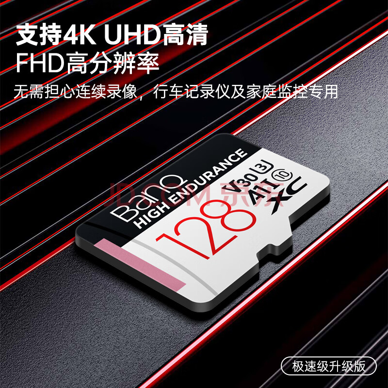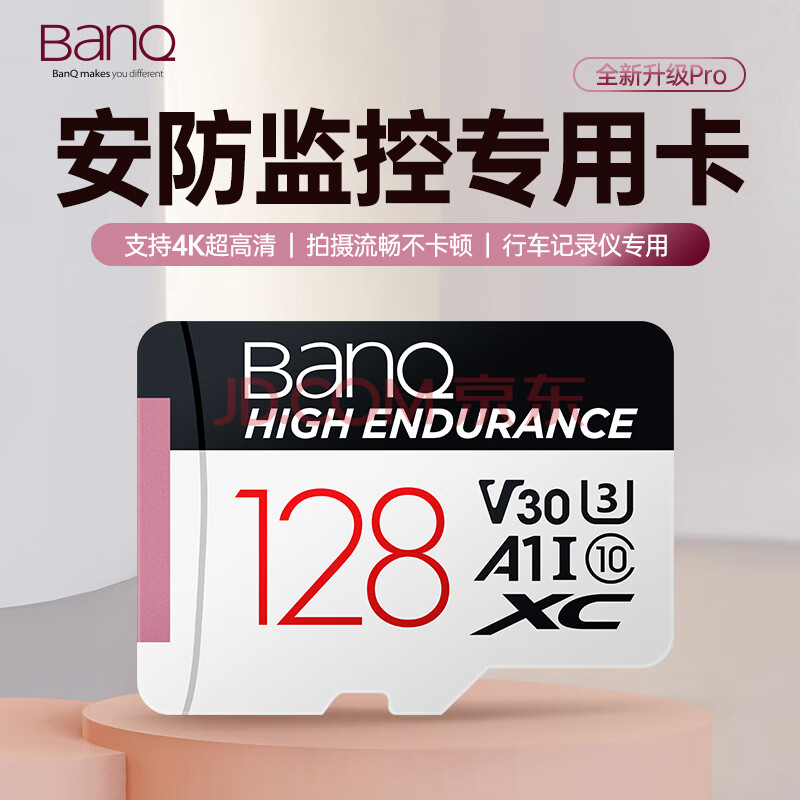 商品相册:banq 128GB TF(MicroSD)存储卡 A1 U3 V30 4K 行车记录仪&安防监控专用内存卡 高度耐用第