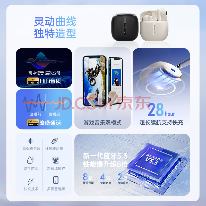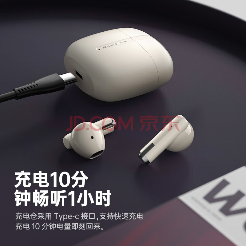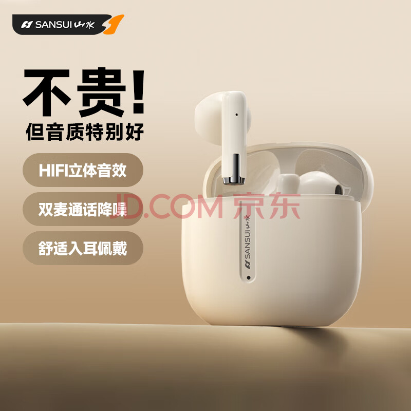 商品相册:山水(SANSUI)TW82真无线蓝牙耳机半入耳式音乐耳机 超长续航运动跑步通话降噪 适用于苹果华为小米 云岩白第