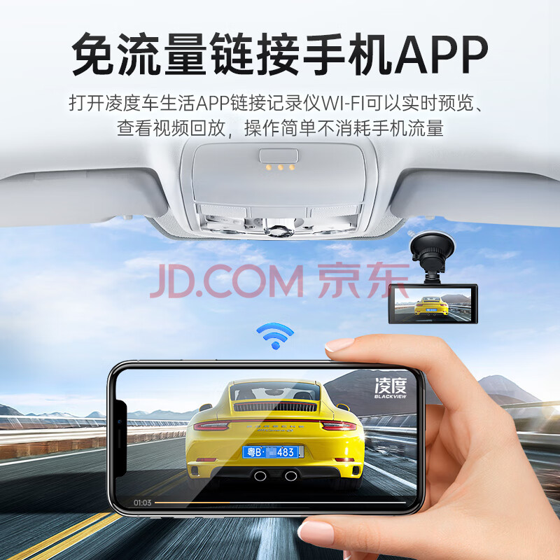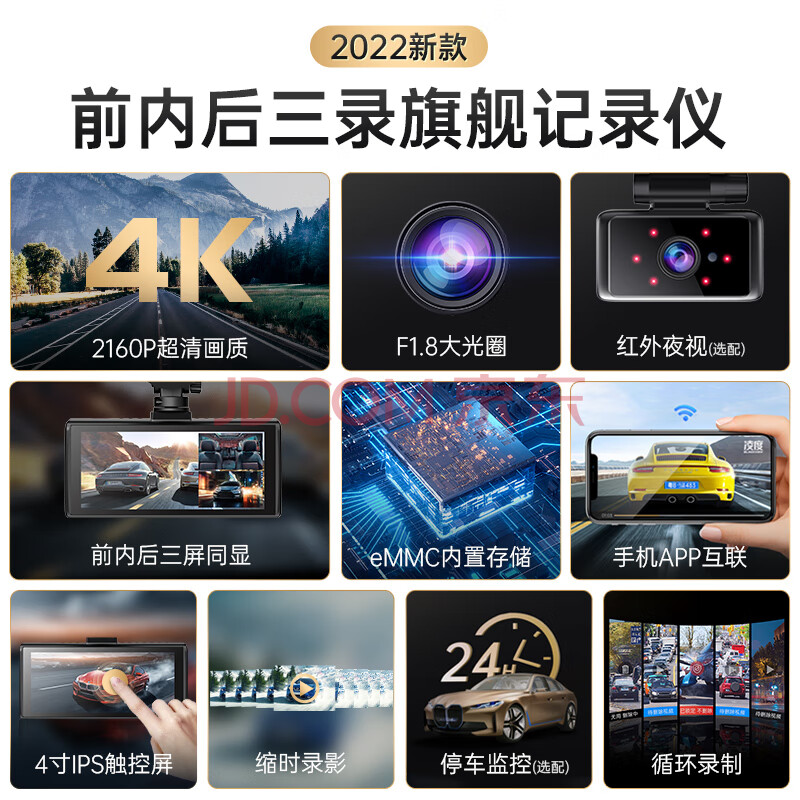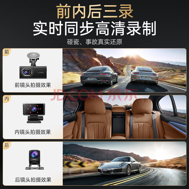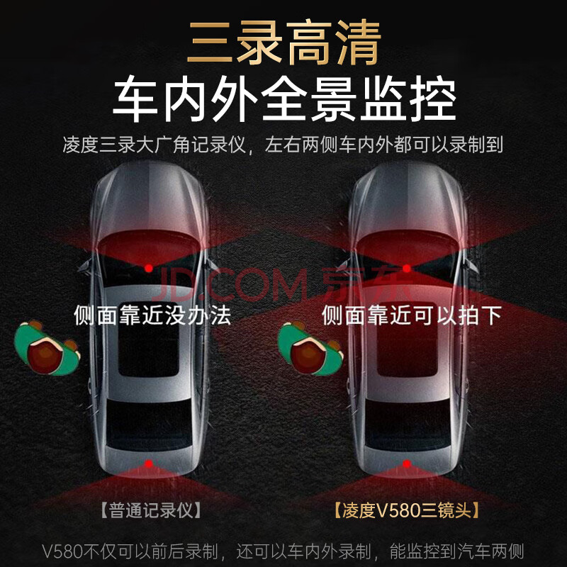 商品相册:LNDU凌度V580前中后三录行车车内记录仪4K高清夜视 手机互联内置存储第